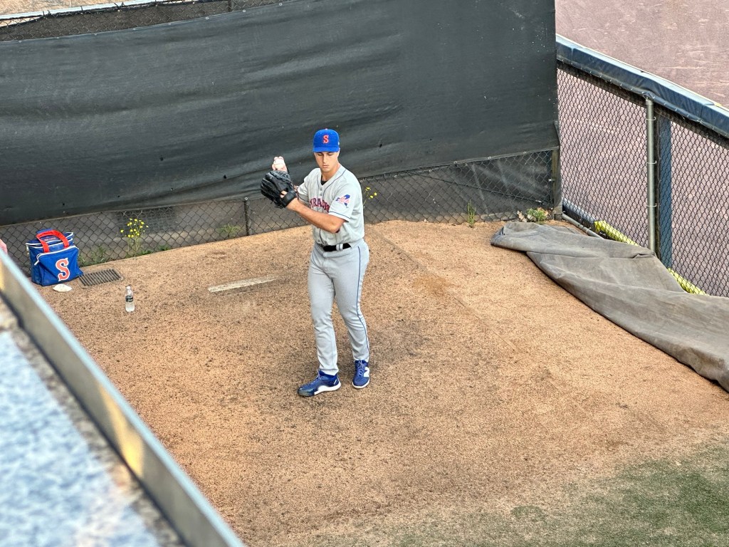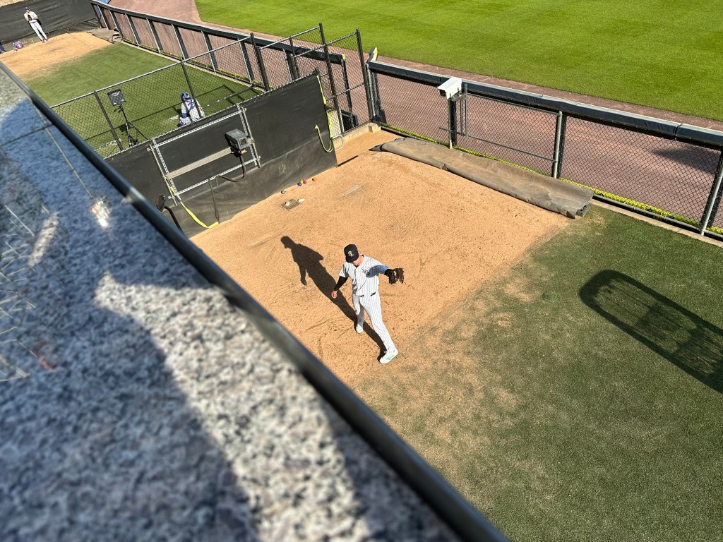 The pitchers had already begun warming up, so I didn’t even bother moving to right field like I usually would. Here’s Will Warren starting his bullpen session: