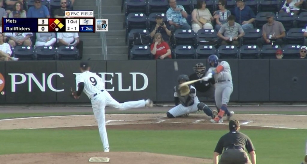 The game itself started out extremely rough. The Railriders looked extremely bad defensively and couldn’t spark anything offensively. The Mets, however, started off with a bang. Come the top of the 2nd, Rylan Bannon stepped up with 2 men on base. Then…