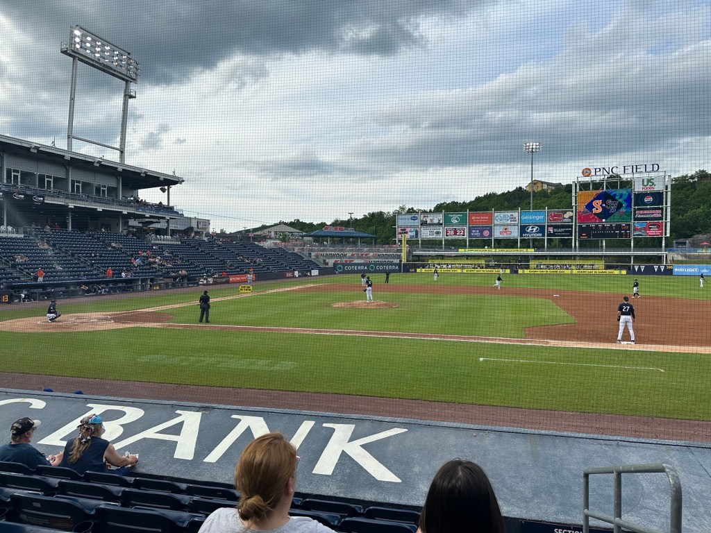Oddly, this day was a doubleheader, however Liv had to be at the local carnival by 7, so we’d only end up staying the 1st game. Got to the stadium much later than I would have liked, but I’m perfectly fine with that since she was with me. In fact, it worked out great as far as numbers. Got in just as the Railriders were starting to play catch along the 3rd base line…