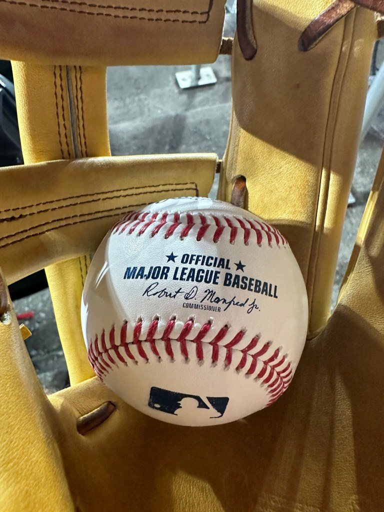 By that point the bullpen crews were heading to the bullpens, so I made my way over there. Got there just in time to get a toss up from Mets catcher Luis Torrens as he was finishing with the pitching machine.