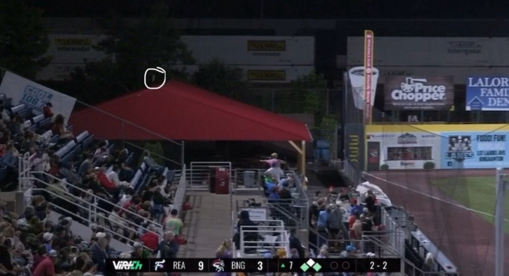 That’s Wyatt Young of the Ponies launching a foul to the patio on the 3rd base side, and as circled in white, I was right in line with it. Unfortunately, I didn’t catch it on the fly. However…